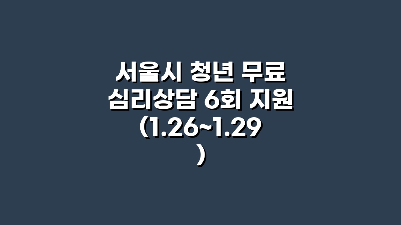 서울시 청년 필독. 전문 심리상담 6회를 무료로 지원하는 ‘2026 청년 마음건강 지원사업’ 1차 모집이 1월 26일 시작됩니다. 약 60만 원 상당의 혜택을 받을 수 있는 신청 방법과 선착순 접수 팁을 정리했습니다.