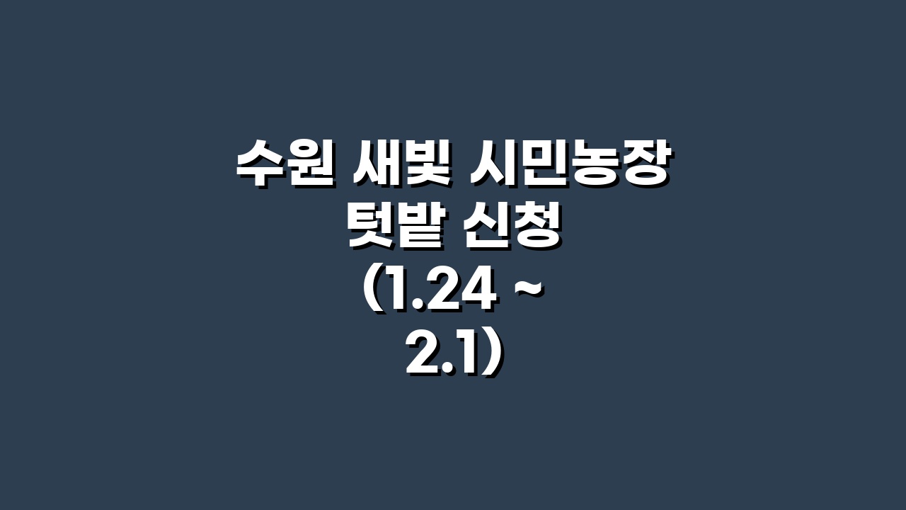 수원시민 필독. 도심 속 텃밭을 가꿀 수 있는 ‘2026 새빛 시민농장’ 신청이 1월 24일 시작됩니다. 2월 1일까지 진행되는 접수 일정과 1세대 1구좌 신청 자격 조건을 정리했습니다.